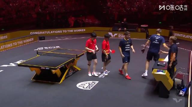 🔥這場男雙1/8決賽堪稱教科書級別的壓制。面對瑞典名將法爾克/卡爾森這對歐洲強檔,兩位小將開局就打出5:1的攻勢。王楚欽的反手擰拉像裝了導航,總能精準找到對手站位空隙;林詩棟則用他招牌的正手爆衝,連續得分後還對著鏡頭比出勝利手勢。